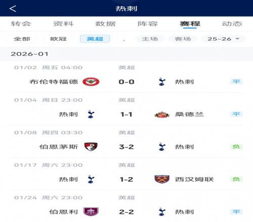 体育播报01月25日宣 英超第23轮,热刺2-2战平保级区的伯恩利,遭遇5轮不胜仅排第14名。