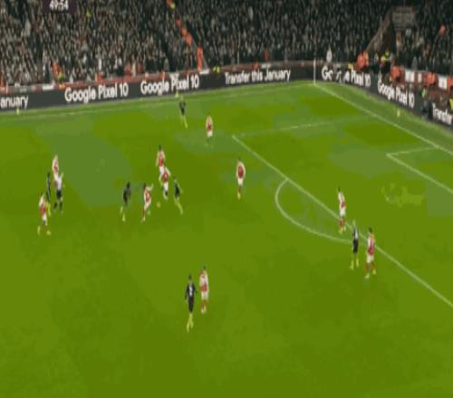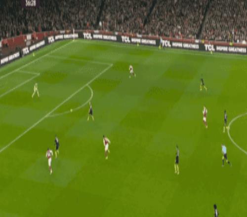 这一场强强对话开打之后,阿森纳就凭借主场之利,大举压上给红魔的后防施压,第9分钟特罗萨德就利用角球机会,完成了一脚禁区内的扫射,但皮球没有压住直接飞出底线,5分钟之后,赖斯反击中的打门,又被利桑德罗马丁内斯挡出,第18分钟赖斯前场右侧定位球开出,苏维门迪极具威胁的头球,被拉门斯神扑化解。