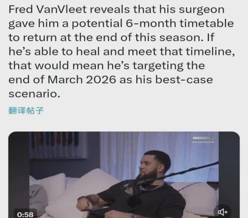 好在去年九月份意外遭遇右膝前十字韧带(ACL)撕裂的范弗利特,有可能本赛季复出,本人之前表示若恢复顺利且能按期完成康复计划,最佳回归时间将瞄准到今年3月底。