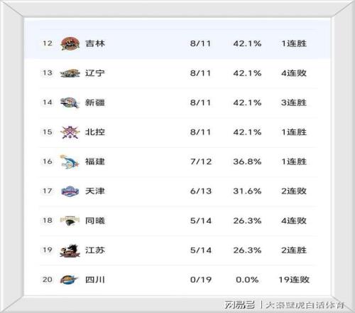 ③、前总冠军四川赛季继续难尝一胜,19连败位居垫底位置。