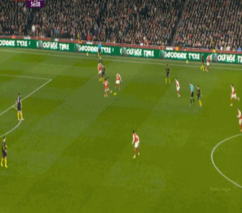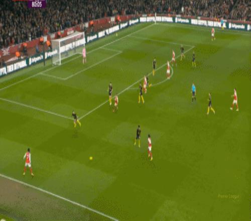 但这次进攻成型也有偶然性,因为阿森纳这一侧的中场和边后卫全部随着进攻球员压上去了,这是反击能出现的关键: