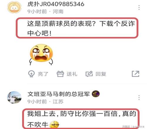 和许利民的“特别相信”范子铭不同,网友们可不惯着他,赛后纷纷吐槽道“在场10分钟输了19分。”;“师傅你是做什么工作的?”;“放个木桩子在篮下都比你有用。”;“也就许利民铁饭碗敢用你,换别的教练早把你坐穿板凳了”;“平均一场进两球,一赛季50多场,进一球拿五六万块。”;“这是顶薪球员的表现?下载个反 诈中心吧!”;“我姐上去,防守比你强一百倍,真的,不吹牛。”……