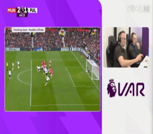 第18分钟,裁判判给曼联点球,随后通过VAR回看后取消