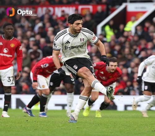 此役对阵曼联,劳尔-希门尼斯在比赛第85分钟主罚点球破门。