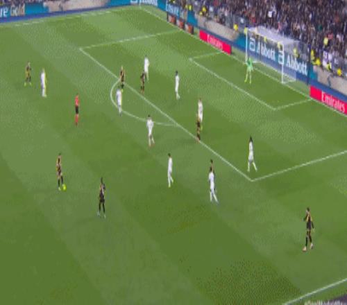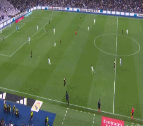第46分钟,单后卫阵容,皇马场上正牌后卫仅赫伊森,楚阿梅尼撤回防线