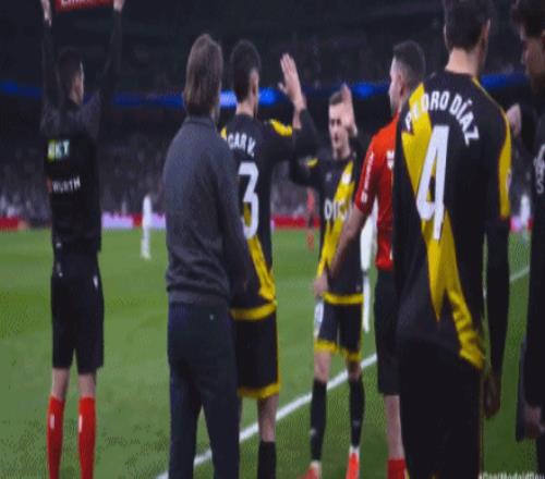 第90+13分钟,查瓦里亚场边推罗德里戈染黄,累积两黄变一红被罚下