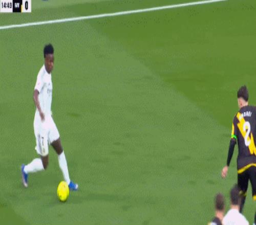 第15分钟,维尼修斯1V3兜射破门,打破西甲13轮球荒,皇马1-0巴列卡诺!